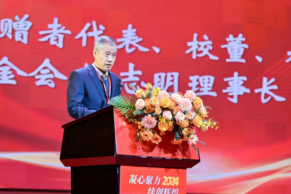 捐赠者代表、学校校董、校友发展基金理事会理事长梁志明发表感言,代表全体校友向母校献上真挚祝福,向默默耕耘、无私奉献的老师们致以崇高敬意。他表示,母校是知识的殿堂、技艺的熔炉,更是校友们梦想启航的港湾。母校的教育理念和办学特色为我们的人生旅途铺设了坚实基石,母校取得的辉煌成就是全体师生共同奋斗的结晶,是每一位校友的骄傲。站在新的历史起点上,广大校友将持续践行“厚乎德行,辩乎言谈,博乎道术”的校训,加强与母校的联系,推动校友企业与母校深度合作,尽己所能为社会作出更大贡献,为母校发展贡献力量、增添荣光。