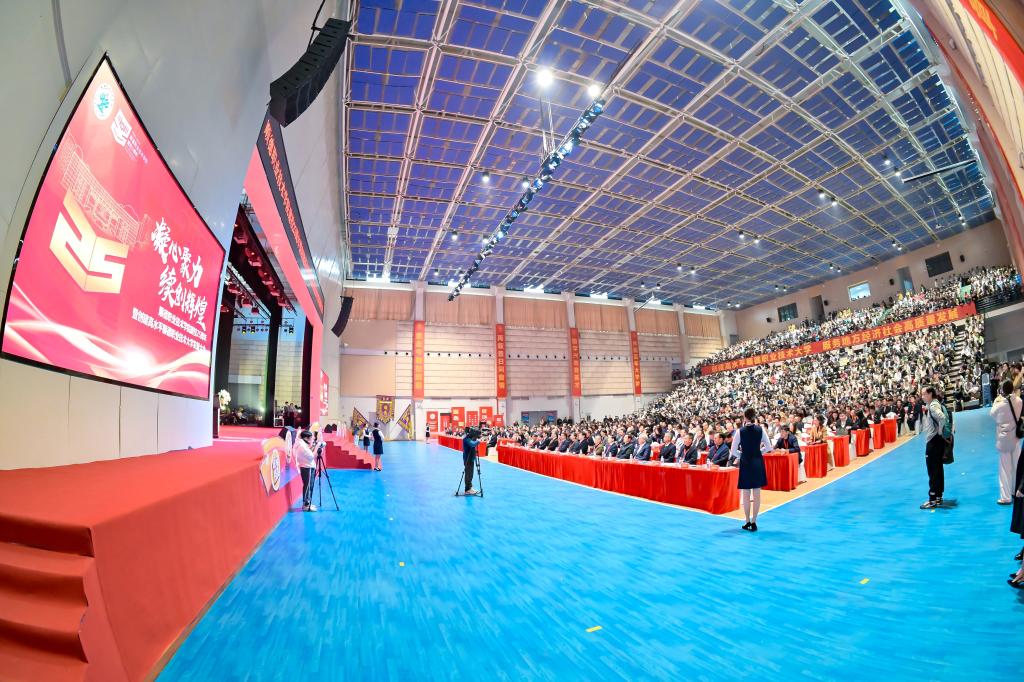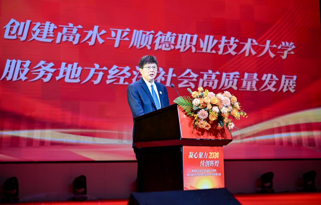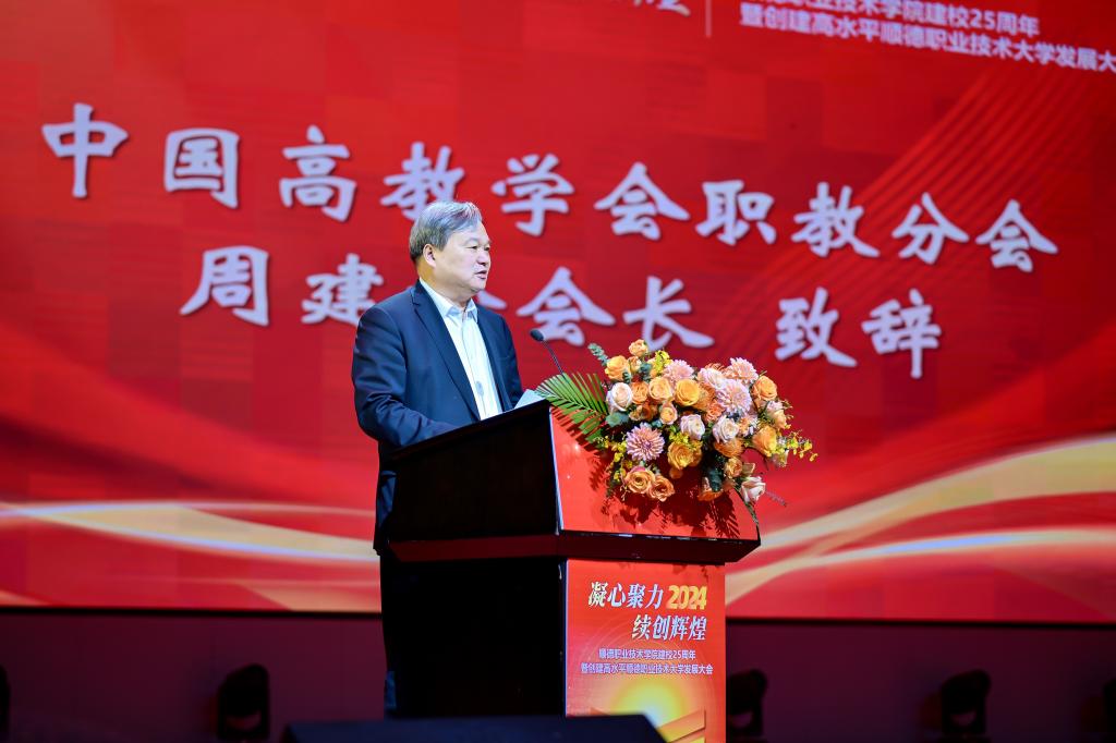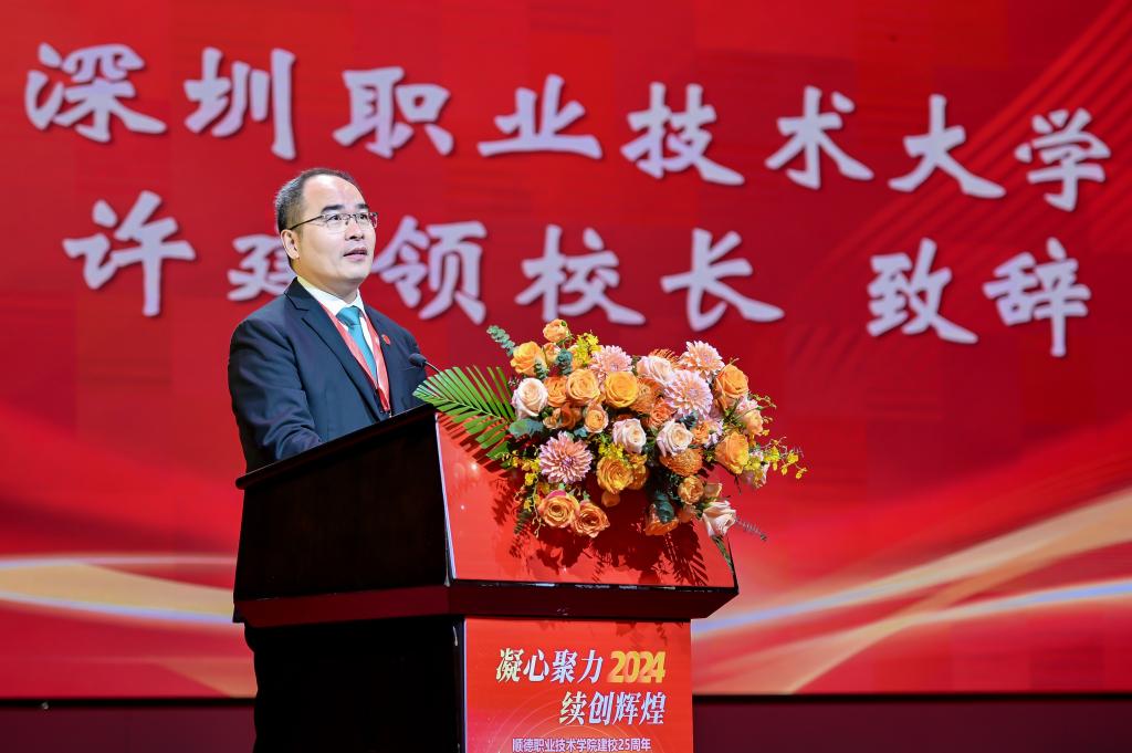 深圳职业技术大学校长许建领致辞表示,顺职院的办学模式和创新实践,不仅为学生提供了广阔发展空间,也为中国职业教育高质量发展探索了宝贵经验。珠江两岸阔,情深一线牵。顺职院与深职大在互相借鉴、互相勉励、互相帮助中走过了漫长岁月,结下了深厚友谊,共同谱写了职业教育精诚合作、共同进步的佳话。期待与顺职院进一步增进友谊、加强合作、携手并进,共同打造更高质量的职业教育,共同为推动教育强国建设和经济社会高质量发展书写职教新篇章,共同为实现中华民族伟大复兴的中国梦贡献智慧和力量。相信顺职院定能以建校25周年为契机,赓续传统、接续奋斗,在创建中国特色、国内领先、国际知名的高水平vwin德赢ac米兰官网的道路上取得更大突破。