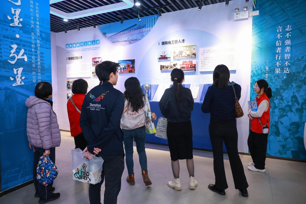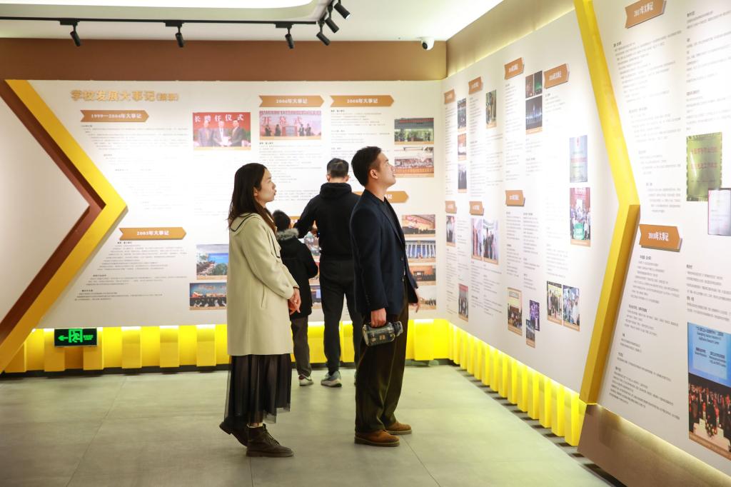冬日的顺职校园阳光明媚,处处洋溢着欢乐喜庆的氛围。精心设计的办学成果展回顾学校办学历程,展现在服务人的全面发展、服务区域经济社会发展、服务国家重大战略等方面的亮点成果,以及各二级学院特色成果。从智慧门到智园,从碧桂园湖到墨子像,每一处拍照打卡点都记录着难忘的青春、求索的印记。教学楼上悬挂着“服务地方、根植产业,廿五践履击楫中流潮头立;成就学生、厚养德技,一心化育陶钧大器海天擎”的条幅,道路旁的灯杆上飘扬着鲜艳的彩旗,共同传递母校对校友的欢迎和祝福。