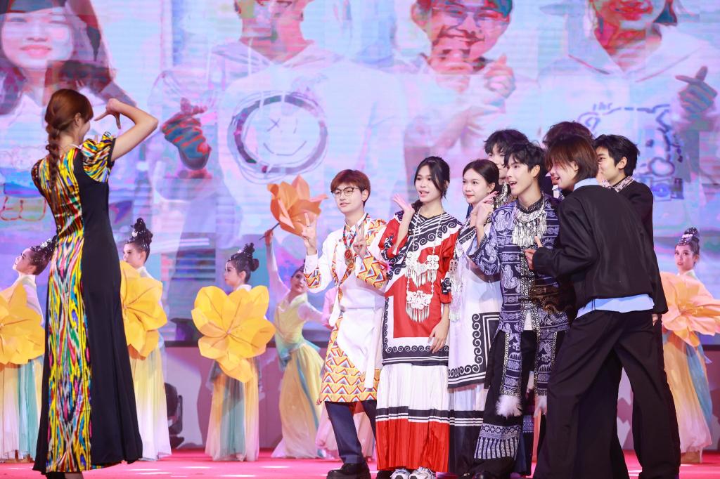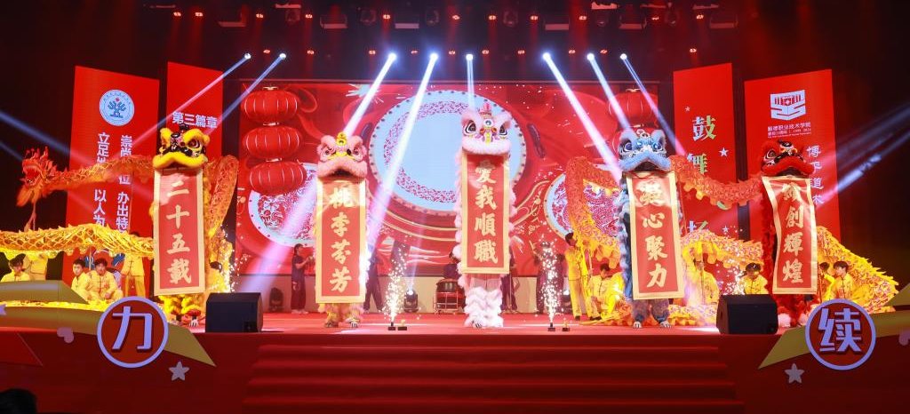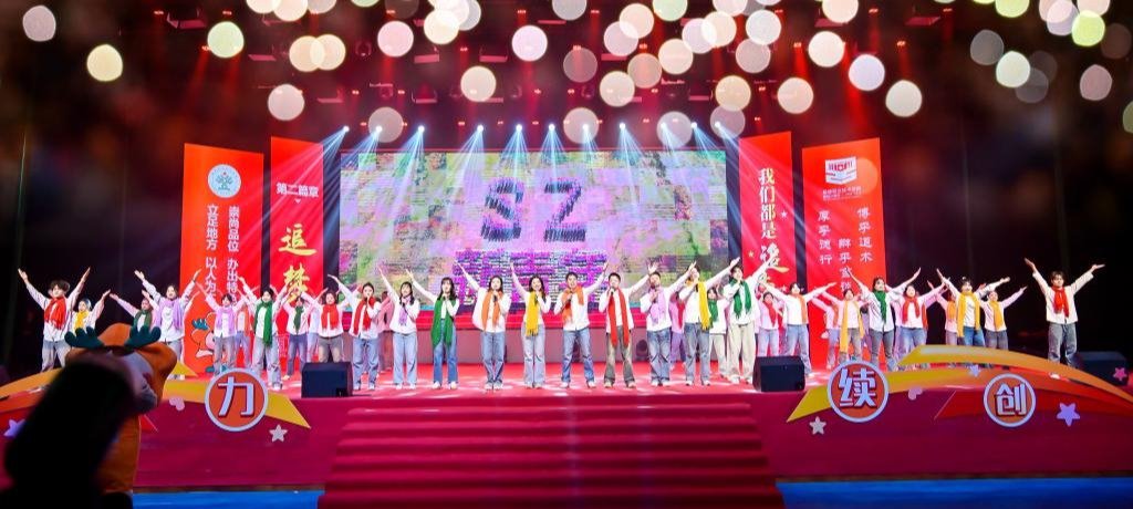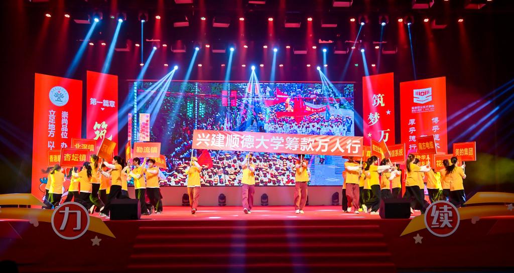 随后,分为“筑梦”“追梦”“圆梦”三个篇章的精彩文艺演出拉开帷幕。情景剧《筑梦万人行》生动重现世纪之交“兴建顺德大学筹款万人行”的感人场景,表达对海内外顺德乡亲的感恩之情,展现学校25年发展壮大的历程。表演唱《芳华织梦》展现各学院专业特色和办学成果,体现顺职师生对墨子文化、工匠精神、顺商精神的执著追求。舞蹈《逐梦鼓韵》的表演者来自学校对口帮扶的贵州台江职校,展现职业教育东西协作取得的丰硕成果,为观众带来丰富视听体验。合唱《我们都是追梦人》青春洋溢、活力四射,诠释顺职人追梦不息、勇往直前的精神风貌。表演唱《25顺职 爱我顺职》感情真挚、婉转悠扬,表达全体师生对学校美好未来的无限憧憬和深情祝福。龙狮和中国鼓表演《鼓舞飞扬》龙腾虎跃、大气磅礴,舞动的节奏和飞扬的激情彰显顺职人砥砺奋进创建高水平vwin德赢ac米兰官网的信心与决心。演出尾声,全场师生校友起立合唱校歌《天地之大任我翱翔》,将大会气氛推向高潮。