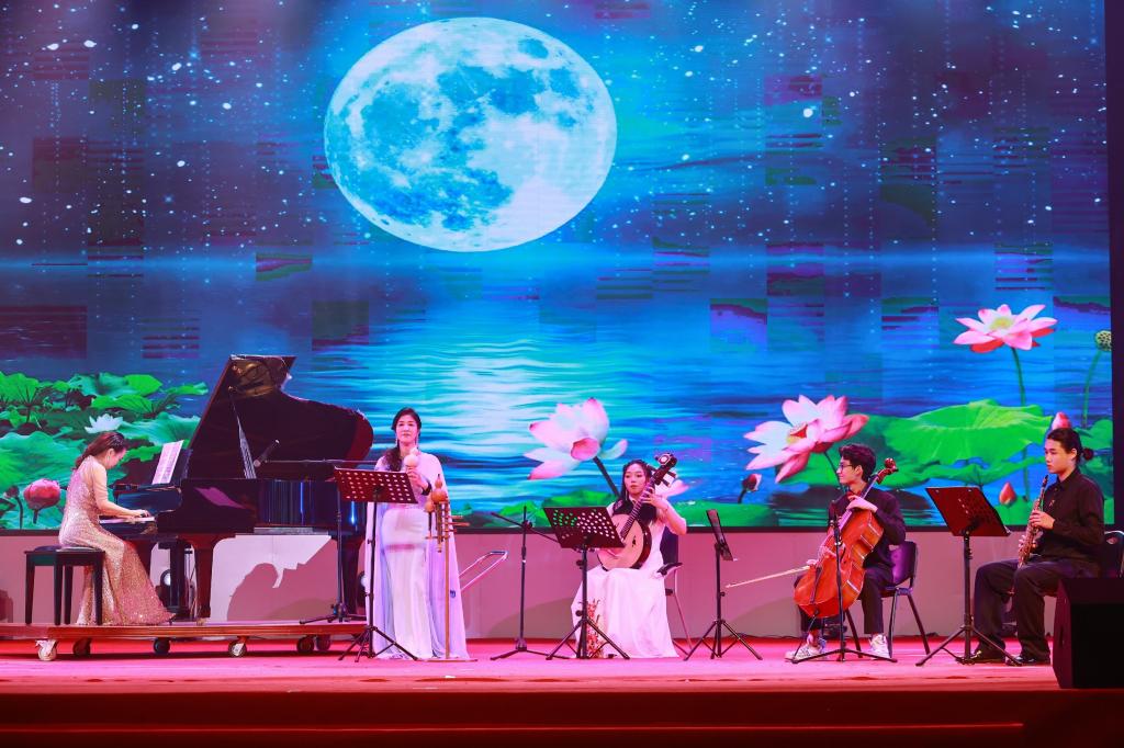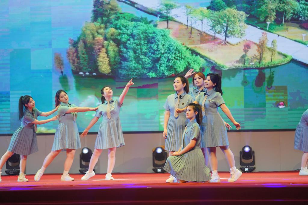 文艺演出在校合唱团女声小组唱《顺德师范学校校歌》和《每当我走过老师的窗前》中悠扬启幕,婉转歌声表达了对母校的深情厚谊。男声独唱《老师我总是想起你》深情而富有感染力,勾起了观众对往昔岁月的无限回忆。器乐合奏《我们的旋律》和谐美妙,将观众带入充满艺术魅力的世界。来自贵州省黔东南州台江职校艺术团的舞蹈《踩鼓少女》热情奔放,展现了浓郁的民族风情和青春活力。