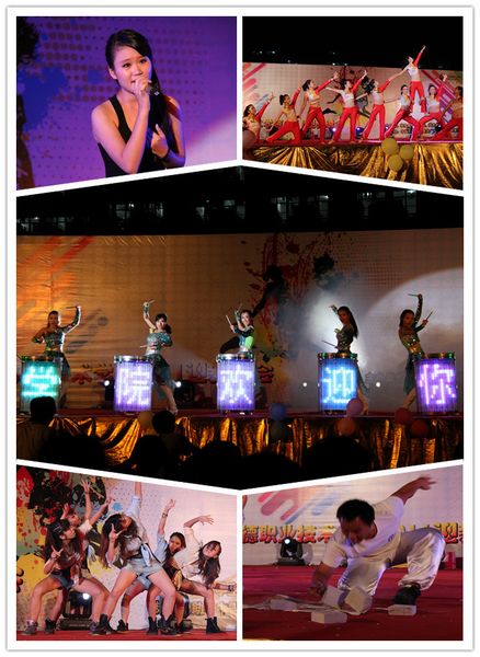 本次晚会节目精彩纷呈,形式多样,融小品、朗诵、话剧、街舞、拉丁舞、健美操等表演形式,欢快的音乐,激情的舞姿,赢得在座师生的频频掌声。动听的歌曲、炫酷的街舞、惊心动魄的双节棍和劈砖表演都让现场的掌声和欢呼声此起彼伏。曾在深圳大运会作专场表演的“茉莉芬芳女子乐坊”女子乐队带来的水晶鼓表演和民族音乐《茉莉花》更将晚会气氛推向了高潮。