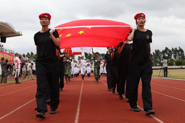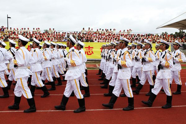 开学典礼之后进行了军训总结大会,夏伟校长在军训团王念江团长的陪同下检阅了各方阵,“敬礼!”“同志们好!”“首长好!”“同志们辛苦了!”“为人民服务!”嘹亮雄壮的口号久久飘荡在操场上空。随后,同学们通过分列式汇报展现了他们的军训成果,赢得阵阵热烈掌声。