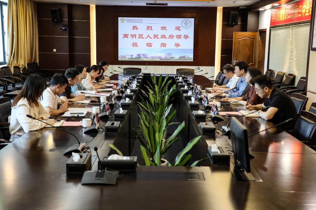 座谈会上,李先祥对陈颖一行到来表示热烈欢迎,并介绍了学校办学情况。他表示,近年来,学校坚持根植产业、服务产业、引领产业,形成了鲜明的“产城教融合”办学特色,创新打造六大产科教融合平台,依托平台推进产教融合、校企合作,取得系列高水平成果,科研与社会服务竞争力居全国前列。当前,学校正努力创建高水平职业技术大学。希望与高明区在人才培养、科研服务、技能培训、社会实践等方面共同深化合作关系、探索创新路径,为高明区文旅产业转型升级和经济社会高质量发展贡献更多顺职力量。