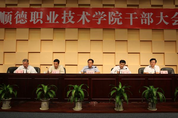 最后,梁维东书记在会上发表重要讲话。他说,顺德职业技术学院发展迅速、硕果累累,为顺德区域经济发展作出重要贡献。历经十年发展,学校已成为我区职教龙头,成为区域转型升级的主要力量,带领其他学校培养了大量高素质技能型人才,得到社会各界支持的同时也得到了社会广泛认同,作为党委书记,他感到无比自豪。顺德职业技术学院是一面旗帜,在未来的发展中要全方位融入顺德改革的方方面面,新一届领导班子要带领全校教职员工为地方、为国家的发展进步作出更大的贡献。“城市升级引领转型发展,共建共享幸福顺德”是顺德区十二五的发展目标,我们面临着顺德如何再造辉煌、顺德职院如何跨越发展的新情况、新问题,在此基础上,梁书记提出三点要求:一、学校领导班子成员要团结一致、解放思想、奋发有为;二、广大教职工要紧密团结在新班子周围,积极拼搏进取,在新的岗位上做出闪光的业绩;三、改革创新是发展动力。最后,梁书记表示区委区政府将全力以赴支持德赢未来建设发展,希望全校师生同心协力,未来十年必将创造更大的辉煌!