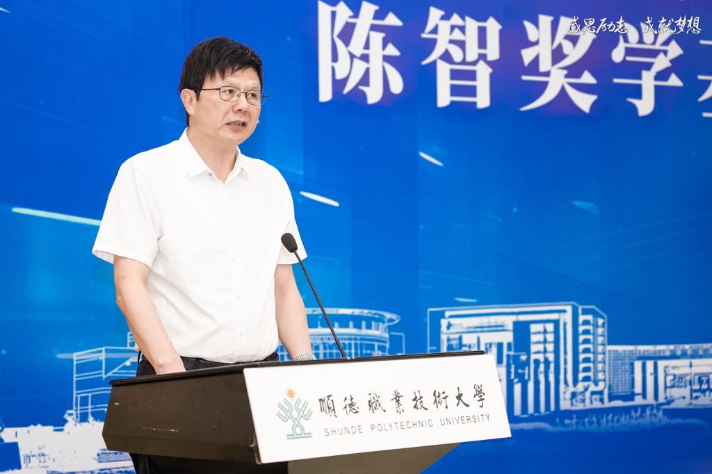 黄淼从三个维度剖析陈智奖学基金的价值和意义。他表示,从历史维度看,陈智奖学基金是顺德职业教育发展的重要见证者和推动者;从育人维度看,陈智奖学基金是培育新时代工匠精神的重要平台;从社会维度看,陈智奖学基金是促进教育公平与社会进步的重要力量。展望未来,陈智奖学基金将继续发挥独特价值,为学校高质量发展提供坚实支撑,携手学校共同谱写佛山职业教育更加辉煌的新篇章。