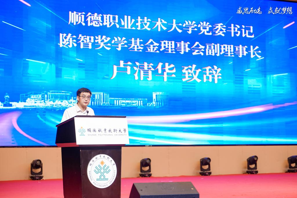 会上,学校党委书记、陈智奖学基金副理事长卢清华致辞表示,今年学校成功创建职业本科大学,这一突破凝结着历任校领导的战略眼光与不懈耕耘,承载着几代顺职教育工作者的心血与坚守,更离不开以孙志恒先生为代表的企业家们多年来对职教事业的远见卓识与慷慨支持。站在职业本科教育的新起点,学校将不断提升办学质量和水平,进一步拓展校企合作、产教协同的深度与广度,与企业共同推进人才培养、科研创新、成果转化,共同打造产学研用一体化的创新平台,为区域经济社会发展输送更多实践能力强、创新素养高的复合型人才。