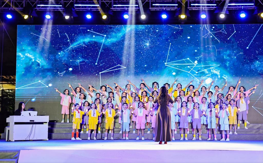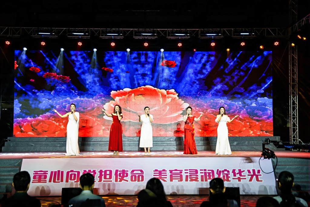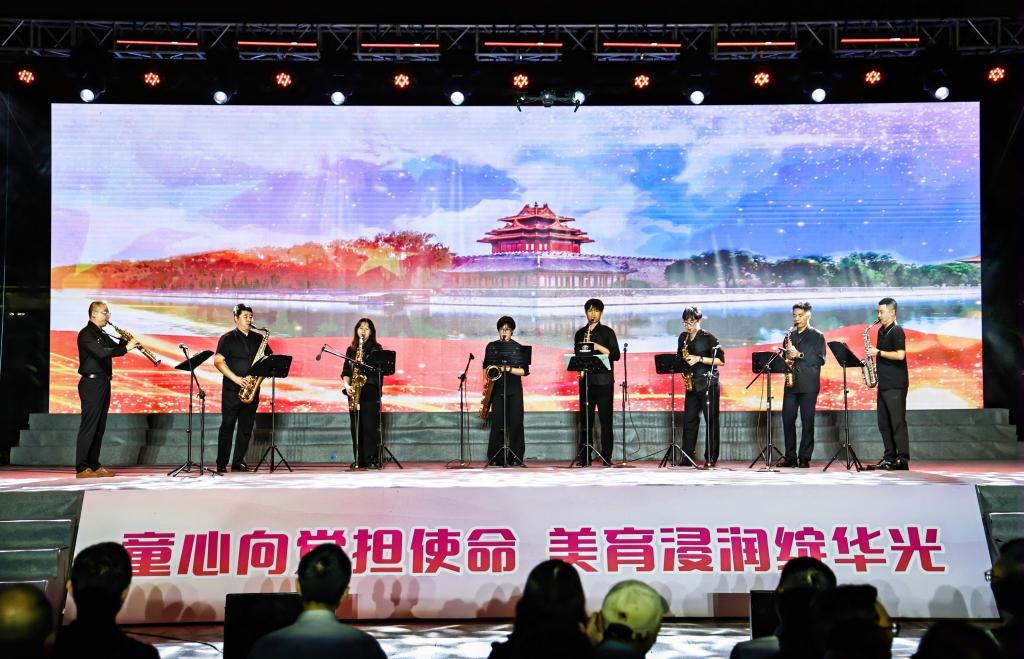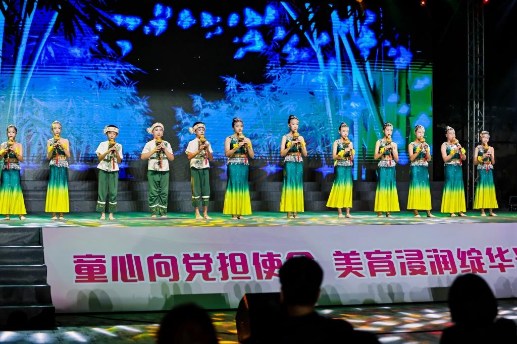 文艺汇演分“童心向党”“梦想启航”“展望未来”三个篇章。节目以《鼓舞飞扬》开场,《星火燎原》《中国好少年》等精彩节目轮番上演。广东技术师范大学管乐演奏融入了美育和思政元素,情景朗诵《稻田里的中国梦》讲述动人故事,《足球宝贝》展现体育文化,阳江市教师艺术团节目精彩纷呈,全面展现美育成果。