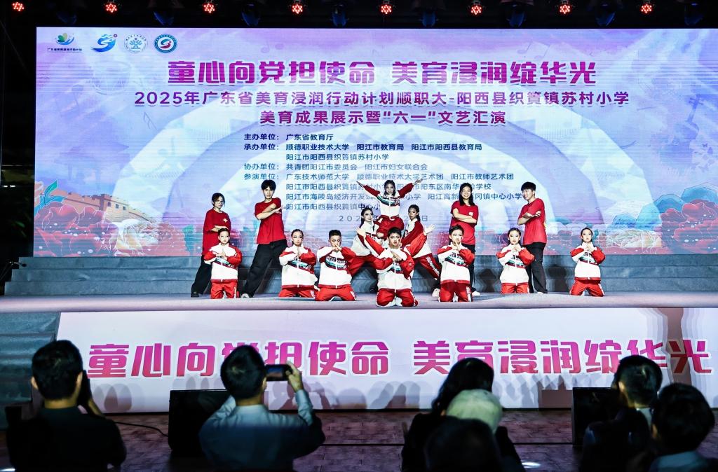 6月20日,2025年广东省美育浸润行动计划“童心向党担使命,美育浸润绽华光”顺职大——阳西县织篢镇苏村小学美育成果展示暨“六一”文艺汇演在苏村小学盛大举办。