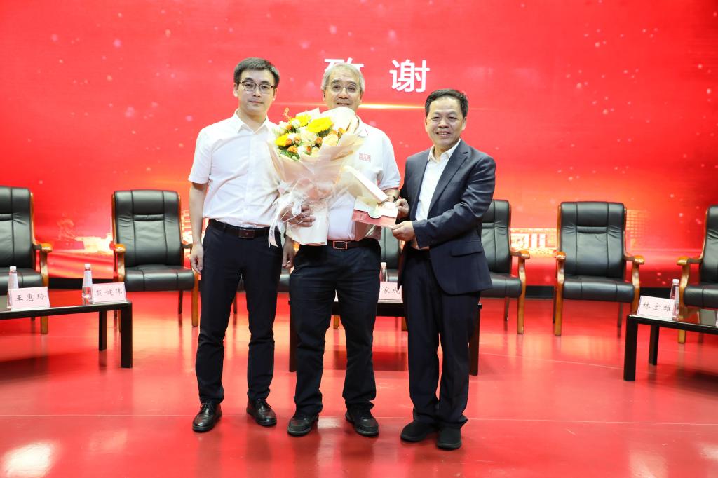 梁伟沛、卢清华分别代表顺德区委区政府和学校,向郑家成先生家族表示谢意,并送上鲜花和致谢函。