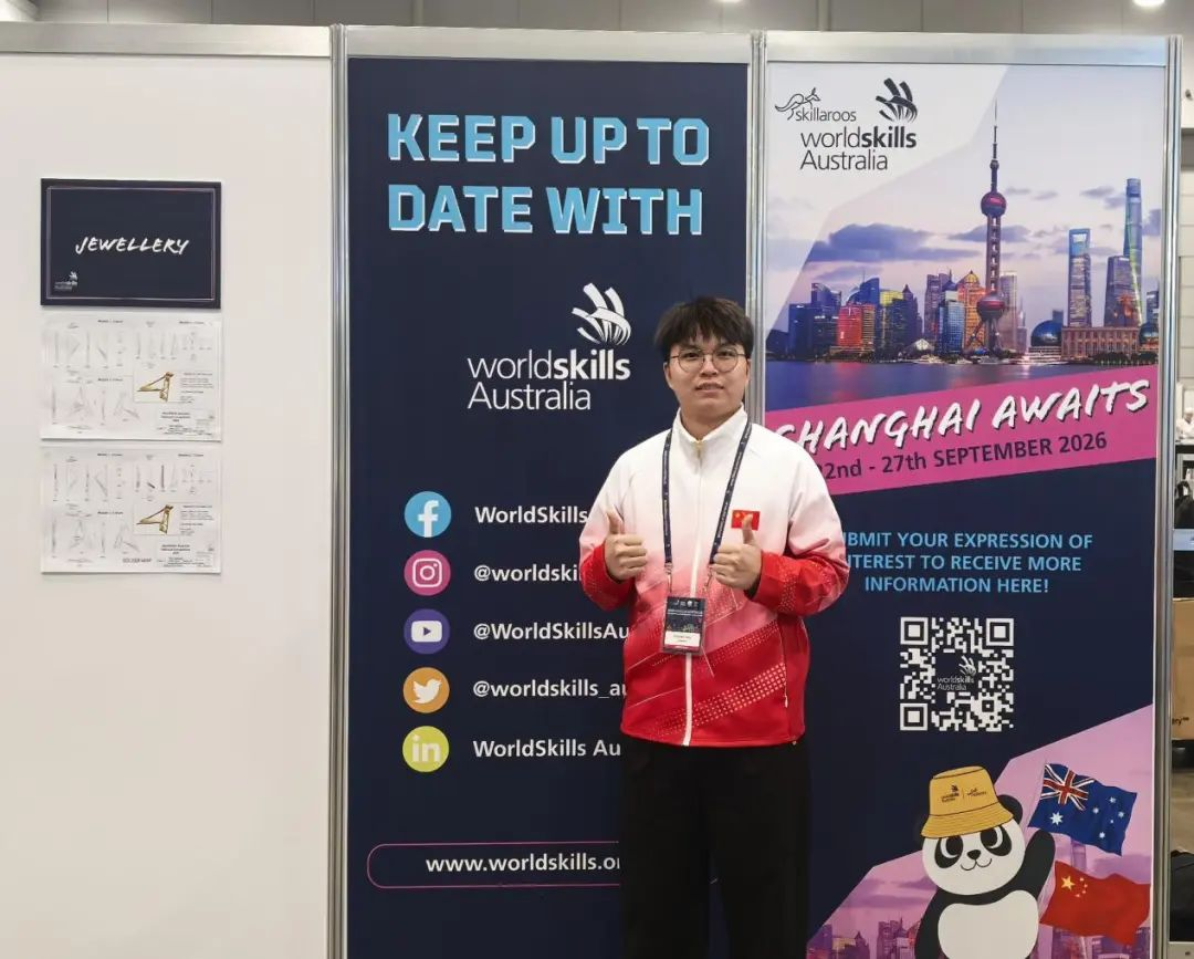 此次锦标赛共有来自澳大利亚等国600余名选手参加涵盖网络安全、橱柜制作、花艺、管道工程等63个技能领域的激烈角逐。梁荣浩参加的珠宝加工项目对技能、耐力与创意提出了严苛挑战,参赛者需在三天18小时内完成涵盖三大模块的珠宝设计与加工任务。赛场上,他以扎实功底与创新思维精准把控每道工序,将中国珠宝技艺的细腻严谨融入作品,生动诠释“执着专注、精益求精、一丝不苟、追求卓越”的工匠精神,赢得国际同行高度赞誉。