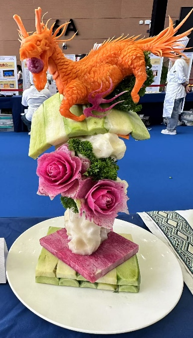 在“粤菜师傅”厨艺交流活动暨vwin德赢ac米兰官网成果展示区,德赢烹饪学院师生的作品精彩亮相,赢得与会嘉宾、业界代表及观众的高度赞誉。现场展出的食物精雕(岭南舞狮、麒麟玉书)、果酱画(好事连连、山水如画等)意境悠远,将观众引入中华饮食美学的艺术殿堂。象形酥(醒狮酥、松鼠酥、章鱼酥等)、药膳象形包(化橘红包、佛手包、陈皮饼干等)形态逼真、技艺精湛,展现了粤菜守正创新的深厚底蕴。药膳茶饮(黄皮柠香鲜萃饮、四棱豆根马蹄饮等)口感清新怡人,精准契合现代健康饮食潮流,彰显了学院在功能性食品研发领域的探索成果。德赢烹饪学院教师麦盛洪现场演绎两道经典粤菜——赖布衣猪网油扣鳗鱼及金钱炸蟹合。精湛的烹饪技法、馥郁的香气,让观众近距离领略了粤菜大师的非凡功力和粤菜文化的独特魅力。