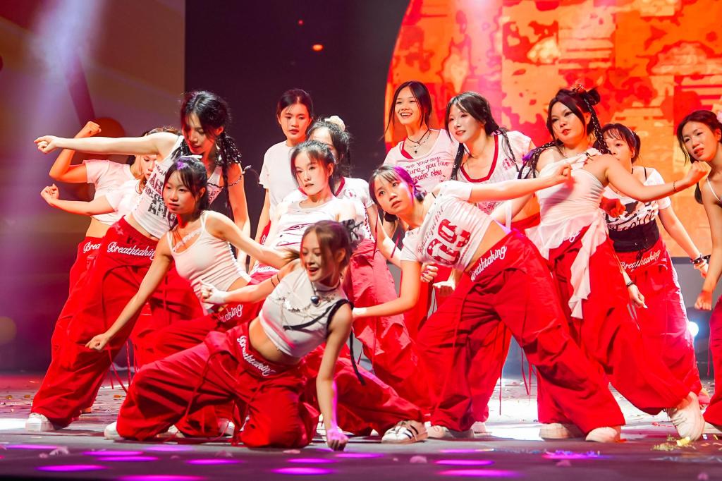 “梦想启航”篇章中,校艺术团醒狮队带来的《狮舞升平》气势磅礴,红色雄狮跃动跳桩,寓意新生开启昂扬向上的大学旅程;街舞队《Put in your checklist》活力四射,展现青年学子的蓬勃朝气;礼仪队《礼韵》优雅端庄,传递校园礼仪文化;现代舞团《Diamond》舞姿灵动,用肢体语言诠释青春的璀璨。