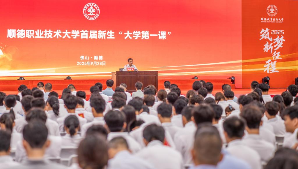 陈新文强调,同学们投身的是一股波澜壮阔、机遇无限的时代洪流。大家的大学生涯与中华民族伟大复兴的关键时期高度重合,与粤港澳大湾区建设世界级城市群的宏伟进程同频共振。当前,新一轮科技革命和产业变革浪潮奔涌,要求未来劳动者是能理解系统、解决问题、适应变化的复合型技术技能人才。这正是职业教育的优势所在,也是同学们的用武之地。佛山顺德作为粤港澳大湾区的地理中心和产业重镇,正全力打造世界级智能制造高地、世界级旅游目的地,将为大家提供前所未有的实践舞台和就业前景。希望同学们立大志,心怀家国,把准人生航向;明大德,锤炼品格,筑牢人生根基;成大才,苦练内功,增强人生本领;担大任,敢于创新,勇立时代潮头。相信几年后的你们,必将以精湛的技艺、高尚的品格、自信的姿态走向社会,成为顺职大的骄傲,成为支撑中国制造、中国创造的坚实脊梁。