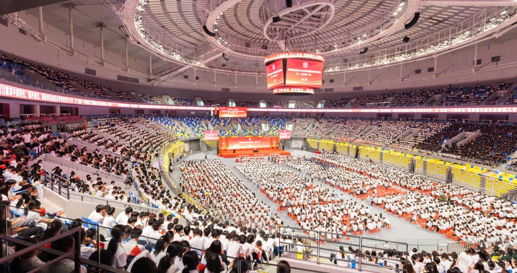 9月28日上午,vwin德赢ac米兰官网首届新生开学典礼暨“大学第一课”在德胜体育中心体育馆举行,佛山市委常委、顺德区委书记陈新文围绕深入学习贯彻习近平总书记关于教育的重要论述和全国教育大会精神,以“扎根沃土,匠心筑梦,在时代浪潮中谱写青春华章”为主题,为全体新生讲授“大学第一课”。