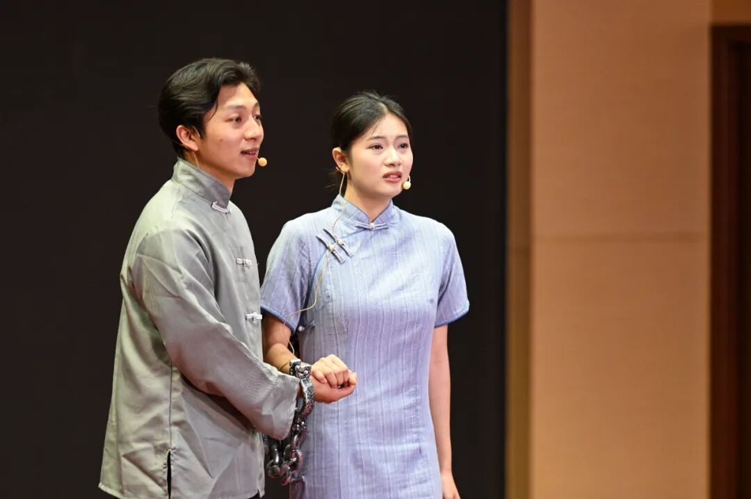 中国共产党的中流砥柱作用是中国人民抗日战争胜利的关键。在宣讲员、高明区博物馆宣教展陈部副主任张文妍的讲述中,一位有着77年党龄的百岁革命者谭天度的传奇人生画卷缓缓展开。谭天度5次被捕、4次入狱,受尽酷刑却仍铁骨铮铮,在狱中写下了正气浩然“忍看群奸相祸国,宁倾赤血换新华”的壮语,现场观众无不动容。