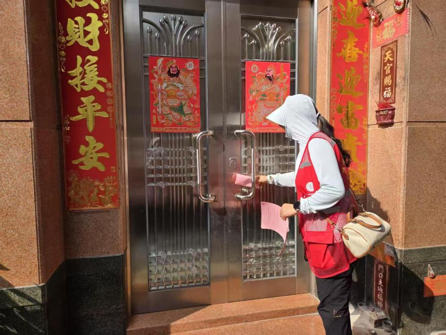 “您好,请开下门,看看家里有无积水?”“您好,这是防疫知识宣传单,请收好。”一次次叩门入户,一声声温馨提醒,人均每天超2万步数,践行的是初心使命。支援环境治理的同时,党群先锋队还支援村居开展入户巡检质控、防疫宣传教育等工作,引导居民在屋内清积水、点蚊香,切实提高健康意识、防疫意识,构筑群防群控坚固防线。