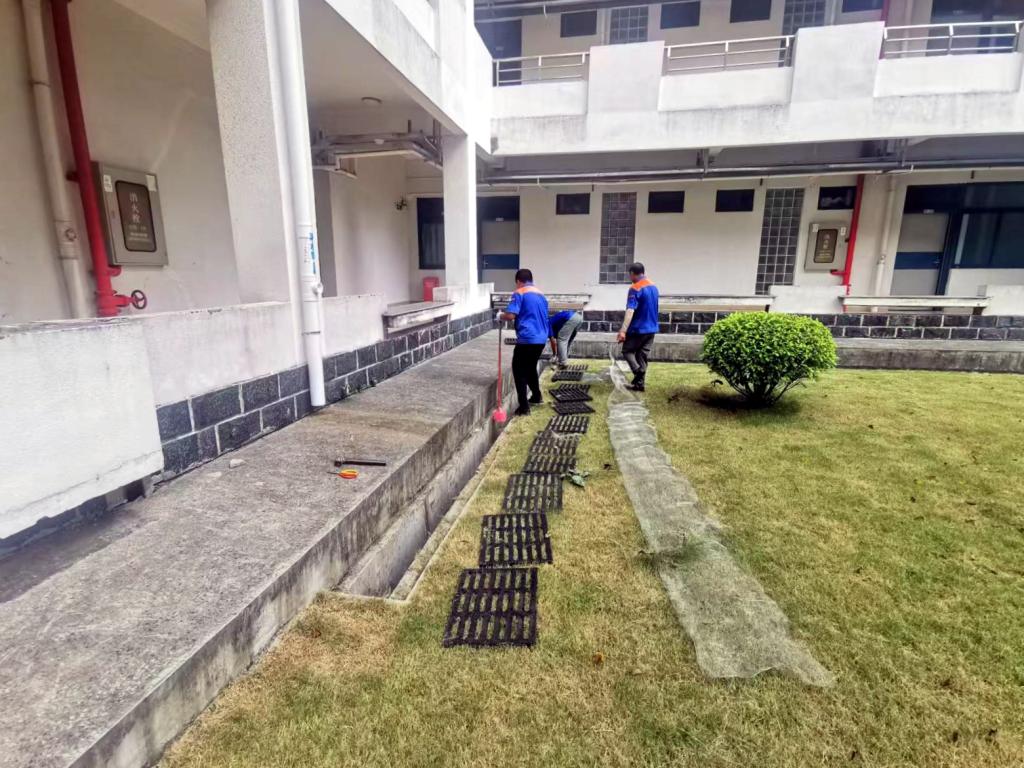 后勤管理部门组织专业消杀团队,通过定期喷洒、投药作业,对公共区域进行全方位、无盲区集中消杀,有效降低蚊媒密度。后勤工作人员对校园内的排水沟渠、雨水井等易积水区域进行清淤疏通,在下水道入水口加装防蚊匣,从源头阻断蚊虫孳生链条;对各类卫生死角、隐蔽角落、灌木草丛、垃圾转运设施等进行全面清理消毒,进一步压缩蚊虫生存空间。