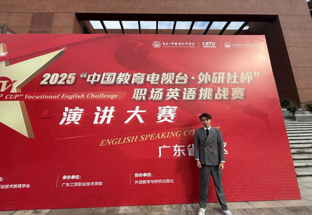 10月25日至26日,2025年“中国教育电视台·外研社杯”职场英语口语比赛在广东工贸职业技术学院举行。本次共有120位选手参赛,德赢应用英语2024级邓锦灏同学(指导教师李昀燕)凭借出色表现获省赛特等奖,将代表广东省参加年底在北京举办的总决赛。