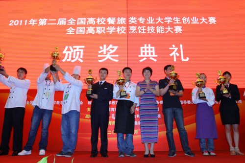 6月5日,在北京举办的“2011年第三届全国高校烹饪技能大赛”和“2011年第二届全国高校餐旅类专业大学生创业大赛”中,德赢酒店及旅游管理系江文竞、冯燕崧、吴见鸿、赵剑祖、曹祖伟5名同学组成的烹饪代表一队(由李东文等老师指导)荣获团体特金奖1项,面点单项金奖1项,热菜和凉菜单项银奖4项;官为敏、邓聪、冯敏楹、闫琦、曾湧佳5名同学组成的烹饪代表二队(由高蓝洋等老师指导)荣获团体金奖1项,热菜单项金奖1项,凉菜和面点单项银奖4项;高焕雯、韩伟、姚敏、陈晓铃4名同学组成的创业大赛代表队(由梁婕等老师指导)荣获团体二等奖。