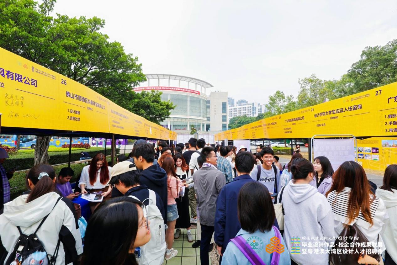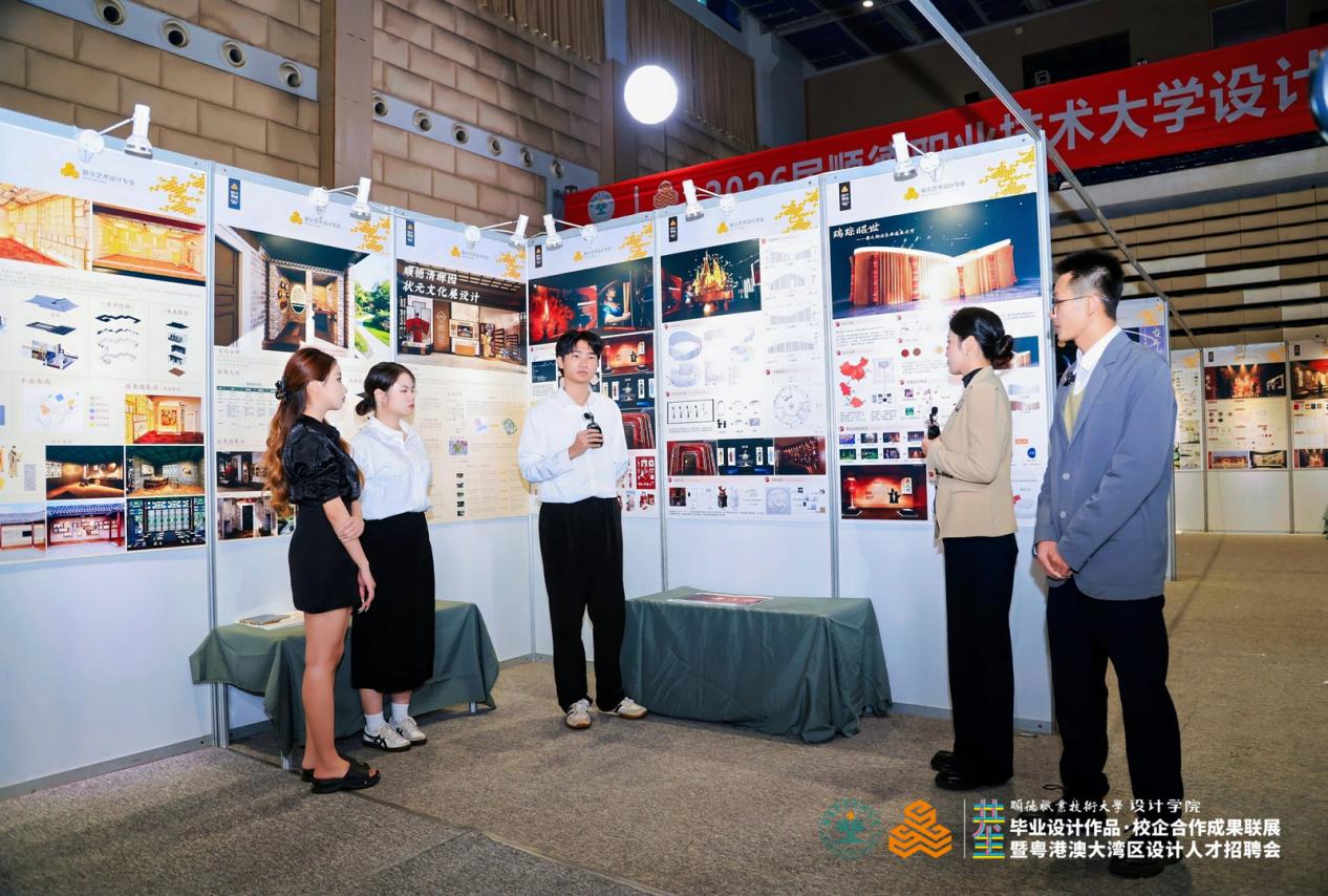 招聘会现场人气旺盛,118家来自粤港澳大湾区的设计企业、文化创意公司、科技企业等现场设招聘摊位,毕业生们纷纷向心仪岗位投递简历。企业代表通过观摩毕业设计作品,直观评估学生创意能力与实践水平,实现精准人才对接。