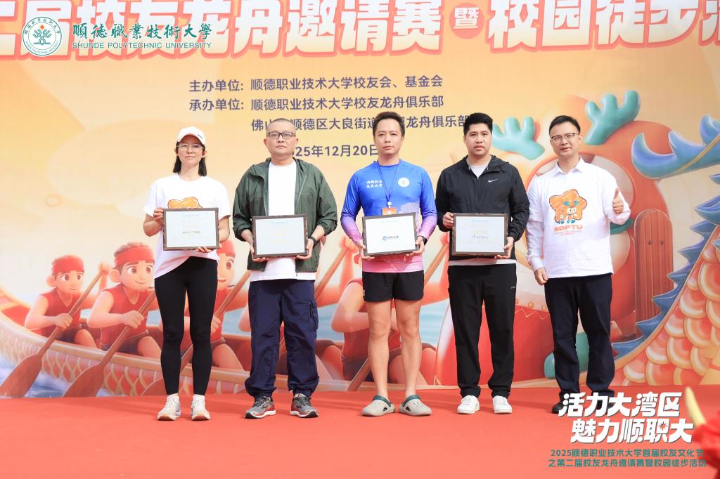 经过激烈角逐,最终,设计学院校友龙舟队、能源与汽车工程学院校友龙舟队、医药卫生学院校友龙舟队、广东顺德创业培训学院校友龙舟队;广东轻工职业技术大学龙舟队、华工顺德龙舟队、勒流青企健龙俱乐部龙舟队、佛山大学龙舟队分别夺得校友组、邀请组金牌。在热烈的掌声中,领导嘉宾为获奖队伍颁奖。