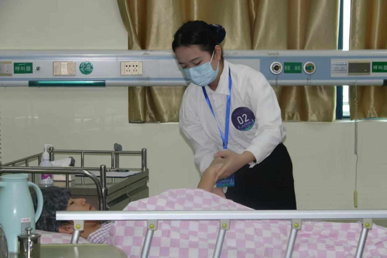 大赛为个人赛,竞赛内容由“技能操作任务”和“文字表达任务”两部分构成,全面考核选手的实践操作能力与反思总结水平。技能操作环节模拟“医院”真实场景,由赛前抽签决定顺序,重点考察选手的应变与照护能力。文字表达任务则要求选手结合实操经历,撰写反思报告,深入剖析照护过程中的得失与感悟,体现出良好的职业反思与提升意识。