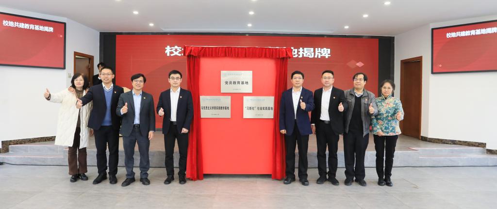 领导嘉宾共同为“vwin德赢ac米兰官网党员教育基地”“vwin德赢ac米兰官网马克思主义学院实践教学基地”“vwin德赢ac米兰官网‘习新社’社会实践基地”揭牌。
