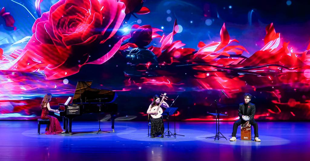 在“筑梦未来”篇章,舞蹈《给未来的信》用优美的舞姿寄托对美好明天的憧憬;二胡独奏《万马奔腾》以激越的旋律传递奋勇向前的精神;中国舞《元夕》古韵流转,展现传统节庆的典雅之美;合唱《我们都是追梦人》昂扬向上,凝聚起全体师生同心追梦、共创未来的坚定信念,引发强烈共鸣。演出尾声,全体演员与观众合唱《歌唱祖国》,将现场气氛推向高潮。
