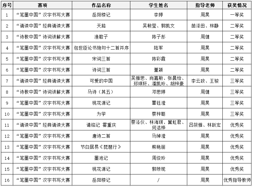 近日,第七届中华经典诵写讲大赛获奖名单公布,德赢师生作品再创佳绩,共获国家级二等奖2项、三等奖2项、优秀奖3项;省级一等奖1项、二等奖5项、三等奖4项、优秀奖5项、优秀指导教师1人。
