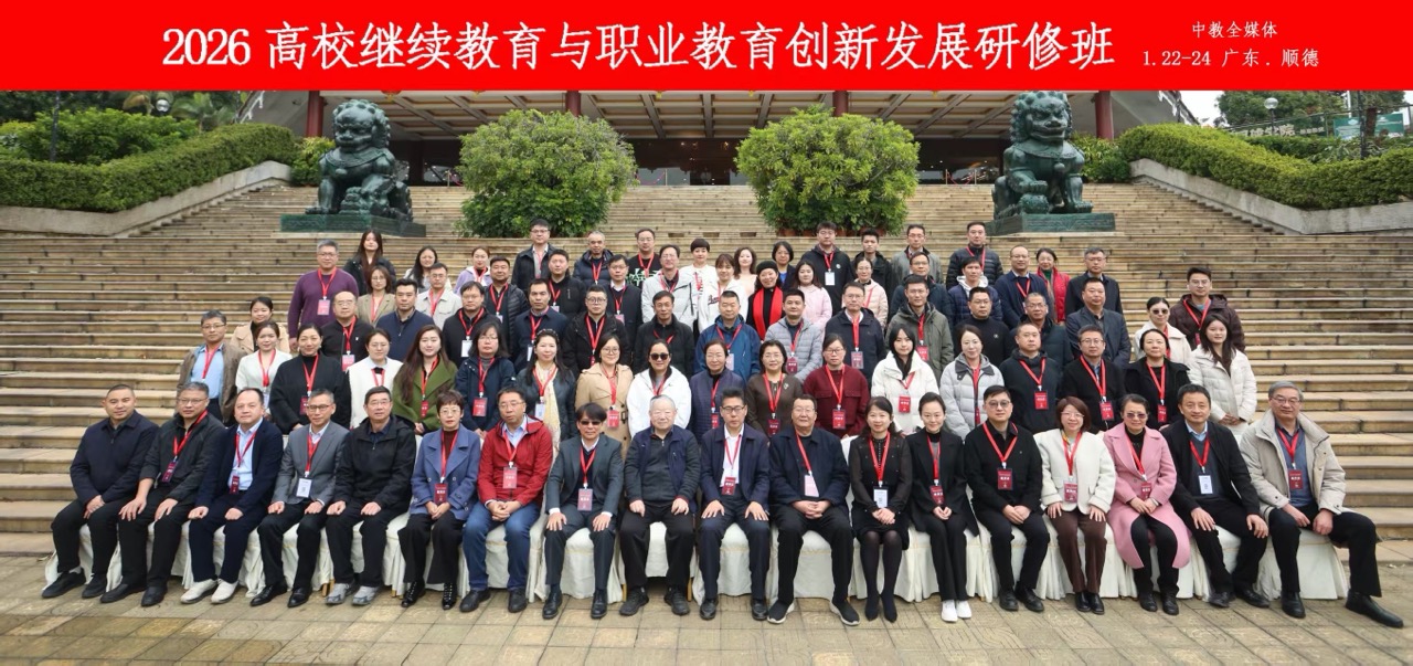 1月22日至23日,由全国高校现代远程教育协作组指导、中教全媒体主办、德赢承办的“2026高校继续教育与职业教育创新发展研修班”在顺德仙泉酒店举办。本次研修班以“AI赋能・产教协同:高校继续教育创新发展新路径”为主题,汇聚全国教育界专家学者与行业精英,共同探讨数字化转型与智能化升级背景下继续教育的发展新方向。作为本次研修班的承办与支持单位,学校为活动的顺利开展提供了高水平的组织与服务保障。