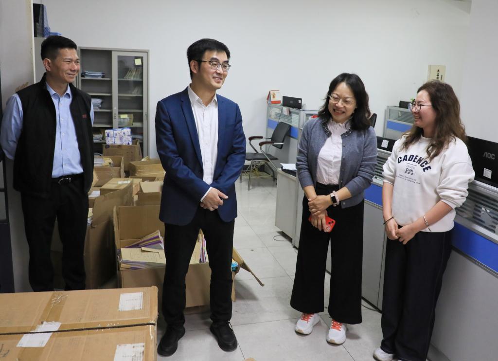 工作室里,青年博士教师们正在认真打磨国家自然科学基金青年科学基金项目申报书。卢清华听取各团队关于科研攻关、成果转化等工作的汇报,关切询问课题进展和教师工作生活情况,充分肯定他们潜心钻研、奋力攻关的干劲,勉励大家继续发扬严谨求实、勇于探索的精神,聚焦国家重大需求与地方重点产业,深耕专业领域,强化团队协作,在科研创新、人才培养、社会服务中勇担使命、再创佳绩。