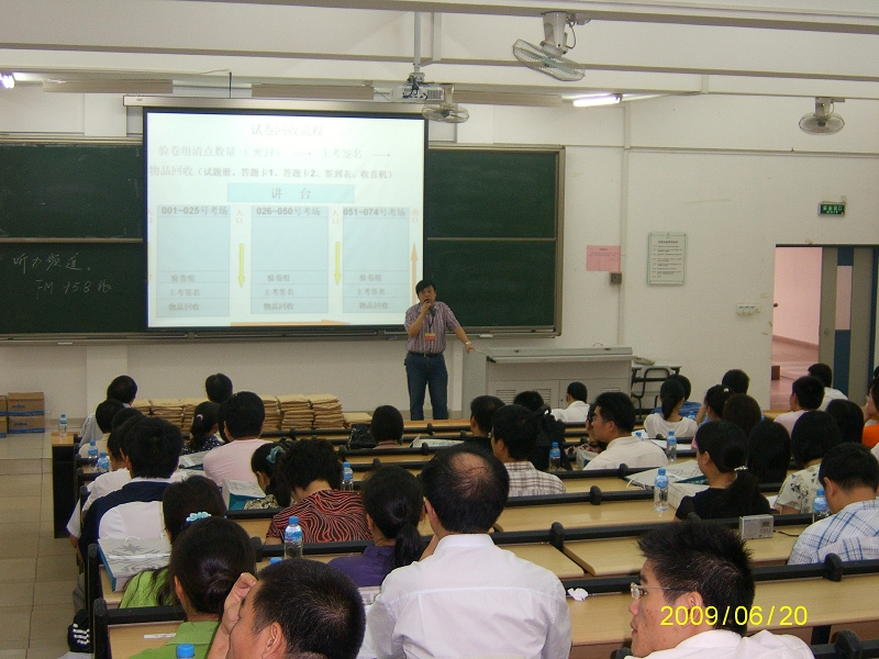针对2009年大学生就业形势,广东省教育考试院要求各考点从稳定大局出发,认清形势,明确职责,积极安排部署本次考试,做好各项备考工作。德赢考点全面落实国家考试有关文件规定,严格按照上级要求,规范考试各个环节管理,狠抓考风考纪;认真开展培训,提高执考能力,并于6月19日下午召开全体考务工作人员及监考人员会议,对考试规程进行了认真的学习和培训。通过培训,全体工作人员及监考员的业务水平得到了提高,明确了责任和要求。