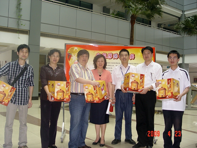 为鼓励广大师生读者们对“你选书,我买单”活动的积极参与和热心支持,图书馆分别对自上个读书日以来,积极参与“图书荐购”,且所荐购图书被图书馆采纳,推荐种数在前10名的卢伟成、杨毅路等教工读者和前20名的陈连朋、罗纯莲等学生读者进行了表彰。馆领导金声、朱杰为以上受表彰的老师和同学,颁发了奖品,并鼓励和希望全院师生,一如既往地关心、支持图书馆的建设与发展,踊跃参与图书馆2009世界读书日系列活动。涵养书香校园,自觉与书同行,成就学习生活!