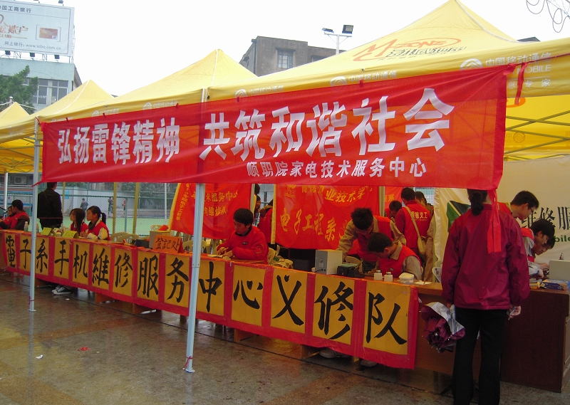 3月1日,电子工程系家电义务服务队的4名教师和16名学生参加了由北滘人民政府、北滘团委、北滘妇联联合主办的大型便民活动,师生们结合专业技能,义务维修家电,弘扬雷锋精神,为北滘社区人民群众服务。活动从早上9点一直持续到下午3点,共收到家电52件,短短的几个小时内成功维修家电39件。同时也打响了学雷锋活动月的头炮。3月8日,电子工程系再次组织服务队到容桂进行义务维修,在容桂南环广场成功修好家电37件,手机18台。