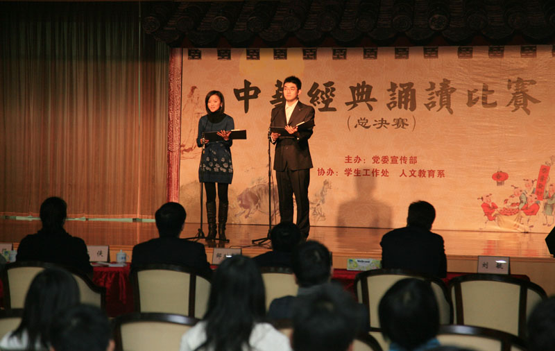 首先,党委宣传部刘晓顺部长为比赛致辞。他说,策划此次活动,旨在通过对传统节日的纪念,弘扬中华民族优秀文化和传统美德,希望广大师生积极投身到“中华经典诵读”中去。