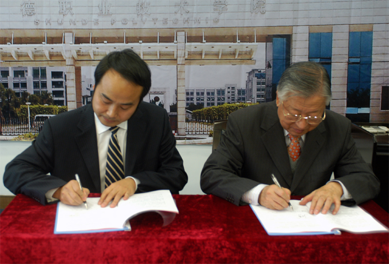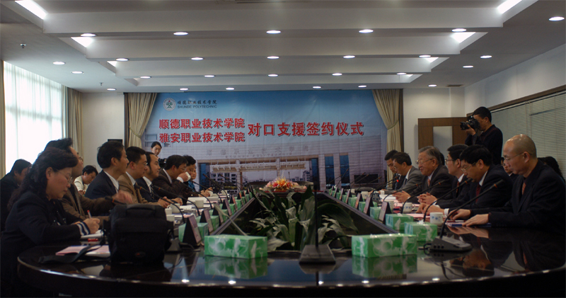 在全国各地深入学习实践科学发展观活动之际,12月4日,顺德职业技术学院与其主动牵手帮助的雅安职业技术学院举行了对口支援签字仪式。双方本着“互惠互利,优势互补,资源共享,市场导向,开放联合”的原则,将在培训进修、定期互访、名师“手拉手”、互动教研、开展讲座、信息共享、衔接培养、帮助指导等方面开展深入合作,相互交流,共同研究,不断提高人才培养质量。