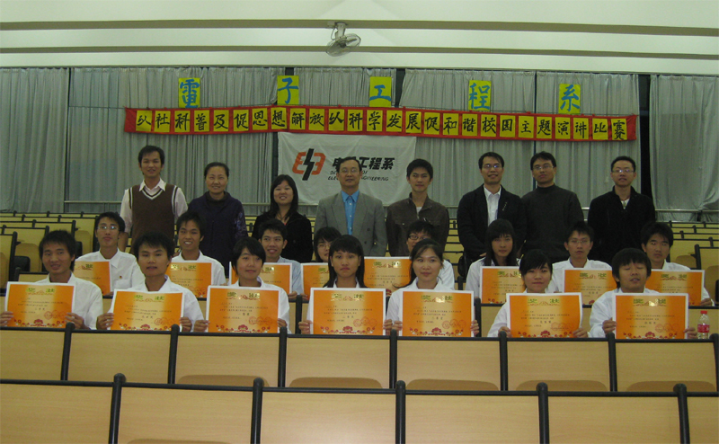 11月13日晚,电子工程系举办了“以社科普及促思想解放,以科学发展促校园和谐”主题演讲比赛。电子工程系党总支石玉财书记、全体辅导员、班主任、全体学生党员、学生干部和学生代表共计300多人出席了演讲比赛。