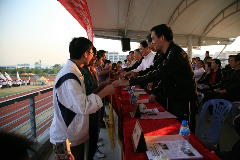 最后,陈智院长宣布顺德职业技术学院2008年田径运动会顺利闭幕。