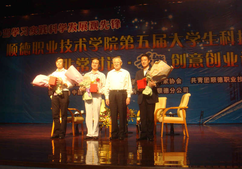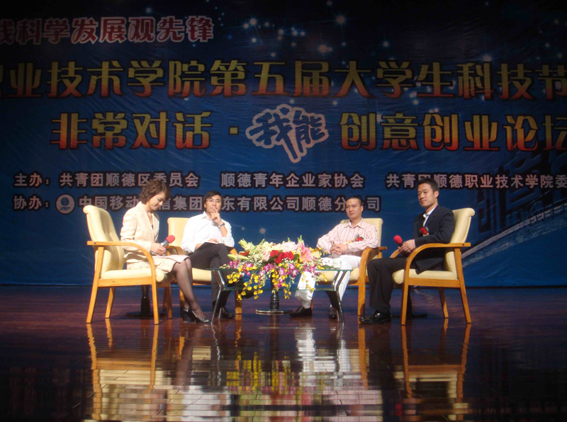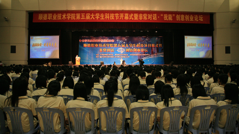 2008年11月5日下午,由共青团顺德区委员会、顺德青年企业协会、共青团顺德职业技术学院委员会主办的以“青春献祖国·创意铸未来”为主题的顺德职业技术学院第五届大学生科技节开幕式暨非常对话·“我能”创意创业论坛在梁銶琚堂隆重拉开帷幕。