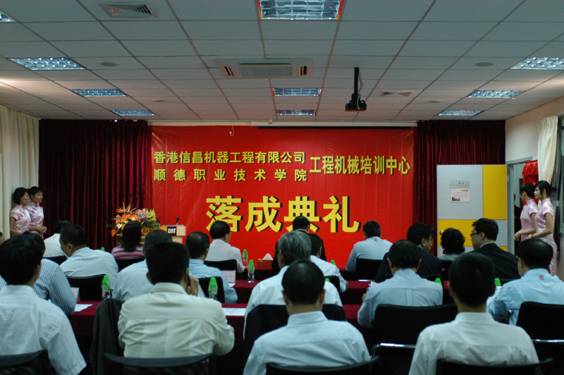 9月22日,在我院实训大楼隆重举行了由香港信昌机器工程有限公司与顺德职业技术学院共同建立的“工程机械培训中心落成庆典”仪式。马来西亚森那美集团副总裁Madam Puan Dzahirah女士、卡特比勒公司华南区总经理郭汉杰先生、香港信昌机器工程有限公司董事总经理Jeffri Salim Davidson先生、香港信昌机器工程有限公司维修总经理Chan Wing Wai, Wylie先生、香港信昌机器工程有限公司人事总经理李健成先生、顺德区劳动与社会保障局副局长陈瑞娥女士、顺德职业技术学院何锐连副院长、陈粟宋副院长、党委宣传部刘晓顺部长、创业培训学院欧阳志强院长、教务处张斌副处长,机电工程系领导陈学锋、李玉春、覃岭及汽车专业负责人范爱民等出席了庆典。