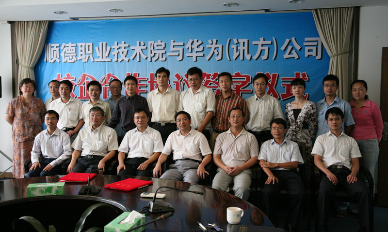 10月9日,在我院行政大楼508会议室举行了顺德职业技术学院与华为(讯方)公司现代通信技术培训基地揭牌和校企合作签字仪式。华为(讯方)公司总经理戴毅、技术部经理马劲松、顺德职业技术学院副院长陈粟宋、教务处副处长张斌,电子系领导郭荃第、石玉财、蔡永昶及通信技术专业负责人钟卫平等出席了签字仪式。