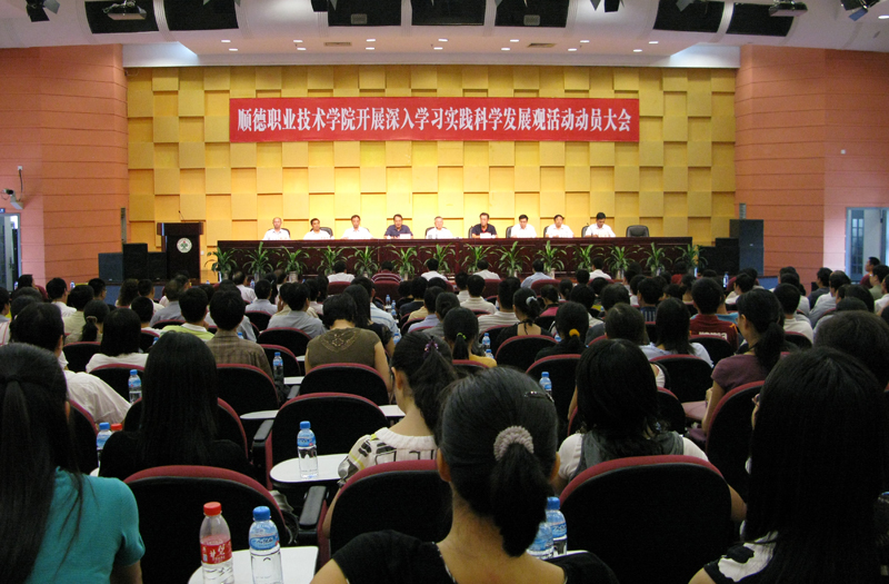 10月22日,顺德职业技术学院党委隆重召开深入学习实践科学发展观活动动员大会,传达学习中央、省委、市委、区委关于开展深入学习实践科学发展观活动的精神,部署学院开展学习实践活动的各项工作。顺德作为广东省开展深入学习实践科学发展观活动县(市、区)试点单位之一,由中共中央政治局委员、广东省委书记汪洋同志直接挂点联系。顺德区学习实践科学发展观活动试点工作指导检查组第七组组长、顺德区区委统战部副部长潘伟松同志,学院领导陈智、何锐连、邹时智、罗勇武、陈粟宋、谭谦章、刘毓、徐刚,以及全院教职员工出席了大会。学院党委副书记、副院长何锐连同志主持了会议。