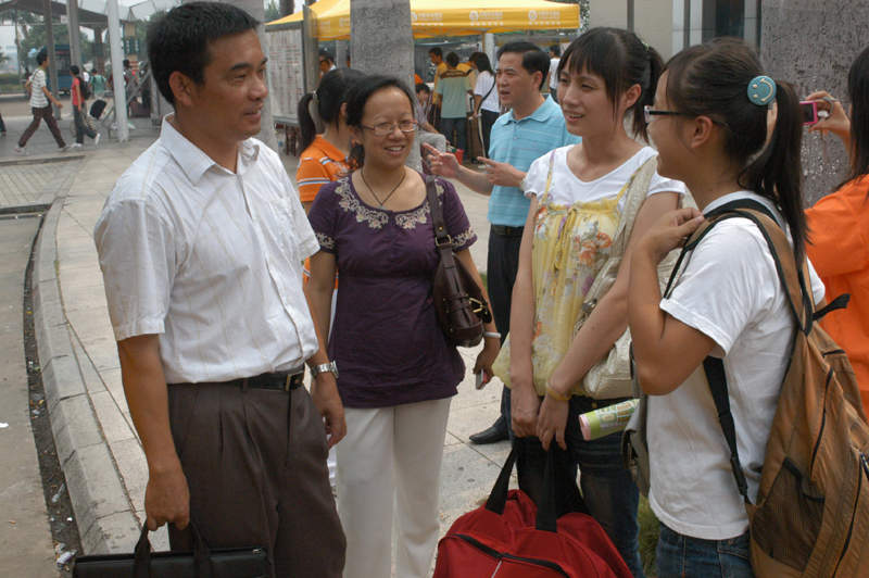 上午11时左右,党委纪委书记谭谦章亲临设在顺德客运总站的新生接待处,他亲切地同新生和家长沟通,详细的询问了他们的情况和需要,对他们表示关怀。