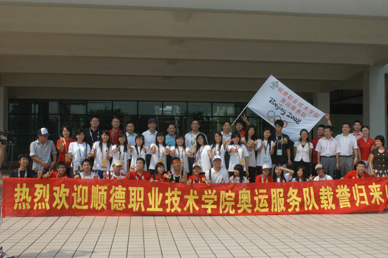 为肯定我院奥运服务队师生在奥运服务工作中的出色表现,宣扬“我服务、我奉献、我快乐,中国加油”的奥运服务精神,学院举行了热烈而富有意义的欢迎仪式。出席欢迎仪式的有学院副院长陈粟宋、纪委谭谦章书记、宣传部部长刘晓顺、学生处处长陈曦、副处长彭忠祥、教务处科长李谟树,以及酒店及旅游管理系陈健主任、董国顺书记、烹饪工艺与营养专业负责人梁婕、实训基地负责人钟宪民等老师,还有数家新闻媒体记者的跟踪采访报道。