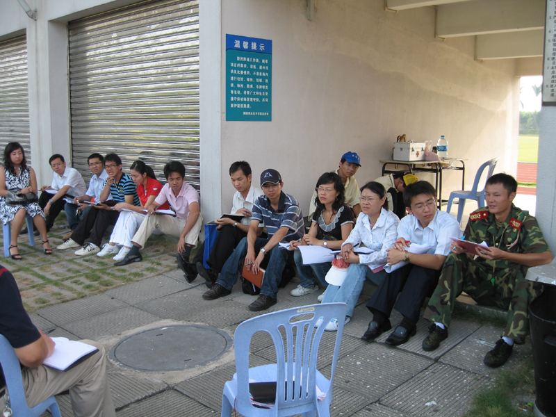 顺德职业技术学院08级新生军训工作已步入第四天的重要性阶段。9月22日早上8:30分,学生处在运动场看台上组织召开军训工作现场会。学院纪委谭谦章书记、学生处陈曦处长、周发新副处长、彭忠祥副处长、经济管理学院曾庆云书记,教官负责人及各系新生辅导员出席了会议,会议由学生处孙红舟主持。