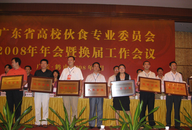 7月2日-4日,广东省高校伙食专业委员会2008年年会暨换届工作会议在鹤山市召开。在省高校伙食工作总结表彰暨颁奖大会上,我院竹苑食堂、荷苑食堂被授予“广东省高校优秀食堂”称号,鼎瀛物业管理有限公司被授予“广东省高校伙食工作先进集体”称号。