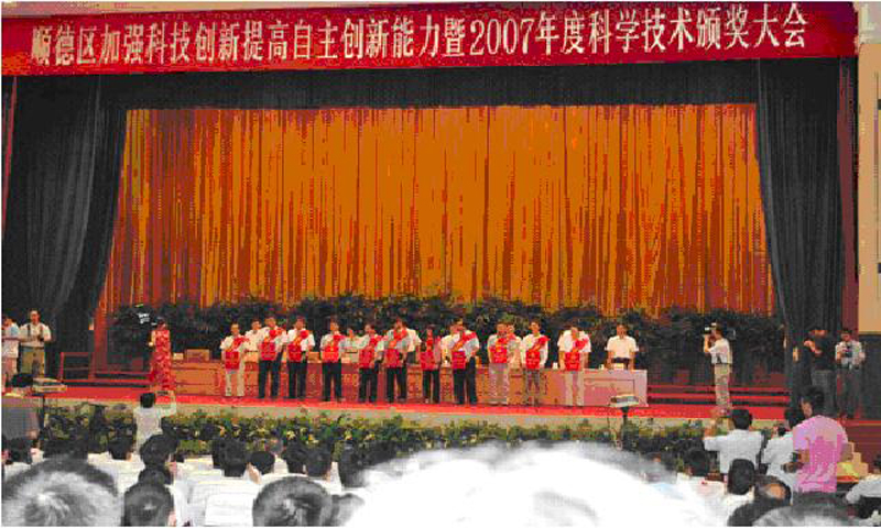 2008年8月14日,顺德区“加强科技创新提高自主创新能力暨2007年度科学技术颁奖大会”在区行政大楼会议中心召开。大会共评出58项科研成果和项目,其中一等奖9项,二等奖16项,三等奖33项,成果涉及家用电器、机电、电子与电气、化工与材料、医药与卫生、农业、教育与社会综合等领域。