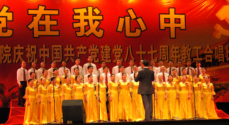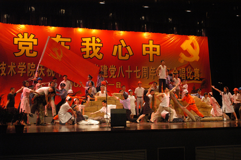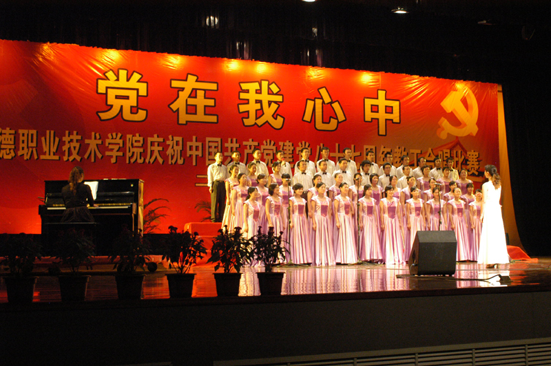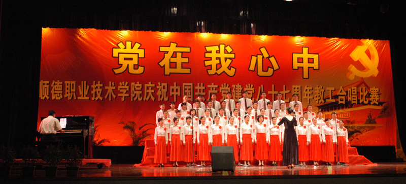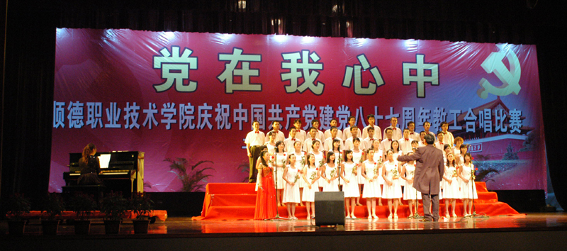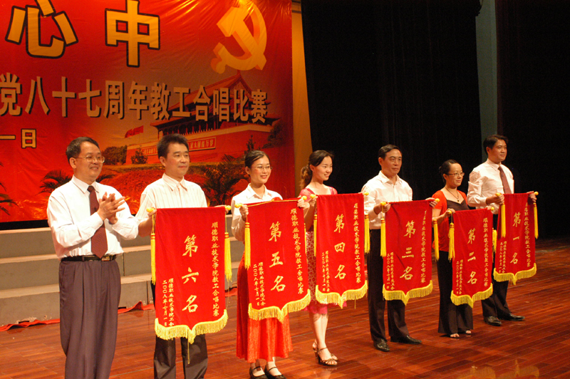 为庆祝中国共产党成立87周年,7月1日晚,我院举行了庆“七一“合唱比赛。人文教育、思想政治理论课部联队获得第一名,行政队获得第二名,医学系队获得第三名,经管学院队获得第四名,外语系队获得第五名,教辅队获得第六名。机电系、电子系、计算机技术系和艺术系队获得优胜奖,机电系队和行政队还获得优秀组织奖。