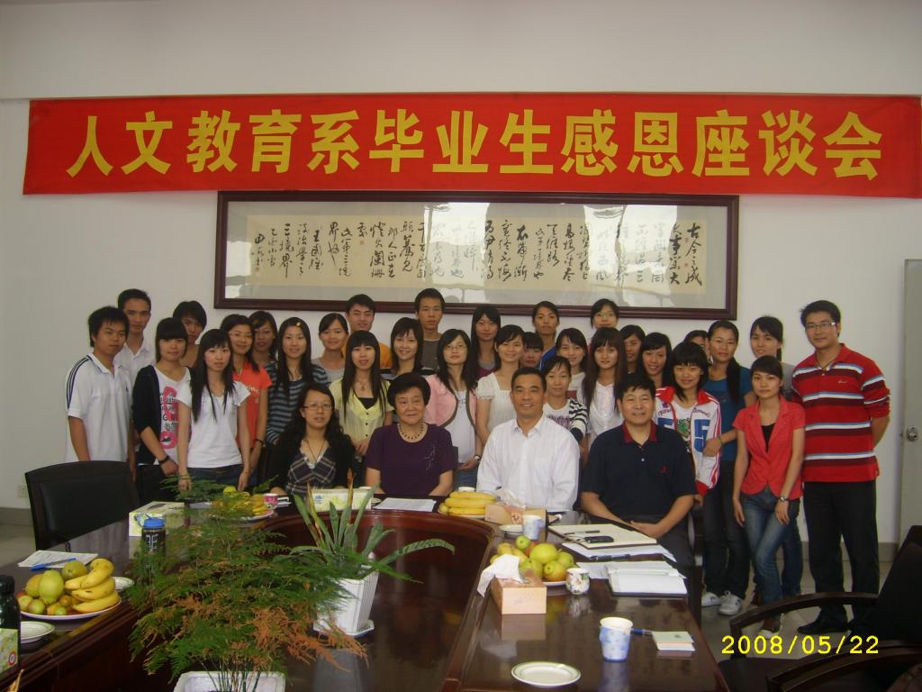 汶川地震让全国人民把爱心献给灾区,献给受灾的所有百姓,更让很多人净化心灵,懂得怎样更好地感恩。据统计,人文教育系初等教育专业03级(五年制)惠东班的同学,五年来共接受佘少鸿助学金、政府补助、国家奖学、助学金、各类捐款等19万8千多元,使一些家庭困难或临时有困难的同学顺利完成了学业。在即将毕业走上工作岗位之际,5月22日,人文教育系应毕业班同学的请求举办专门的“感恩座谈会”,03级惠东班的同学在会上表达自己在学院学习中,受助解困,发展成长的特殊情感。学院纪委书记谭谦章、老年大学佘伟校长、学生处陈曦处长、人文教育系陈建华主任、訾文良书记和受李佘少鸿女士资助的28位03级初等教育系专业毕业生出席了会议。